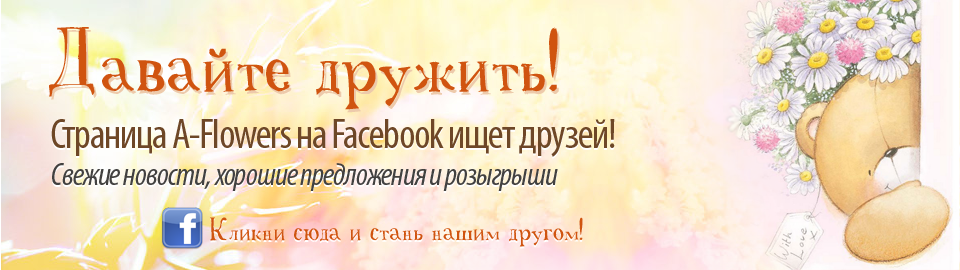 Заказать цветы с доставкой курьером на дом можно онлайн при помощи нашей удобной корзины покупок. Поздравьте своих близких и друзей с праздниками, подарите букет любимому человеку, признайтесь в своих чувствах - вам поможет наш выбор цветов онлайн! Цветочный Интернет-магазин A-Flowers желает вам приятных и милых сердцу покупок!