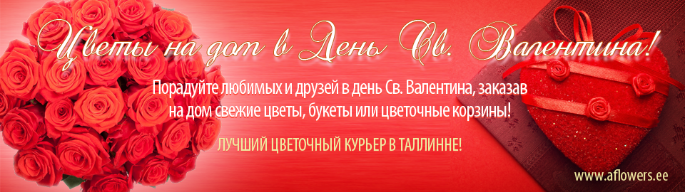Быстрая доставка цветов, букетов и подарков в Таллинне, по всем городам Эстонии и зарубежом, удобные способы оплаты в магазине (банковские ссылки, кредитные карты, оплата по счету и т.п.), широкий выбор и низкие цены сделают нас вашим любимым цветочным магазином! Нет ничего приятнее, чем получить на дом цветы и роскошные букеты с курьером! Доставка цветов и подарков осуществляется каждый день без выходных, с 8:00 до 18:00 включительно.